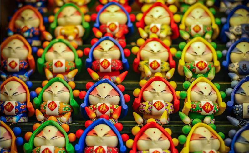 舊時北京東四牌樓一帶,常有兔兒爺攤子。在民間藝人手中,兔兒爺有了兔首人身,手持玉杵的形象,成為孩子們的絕妙玩具。