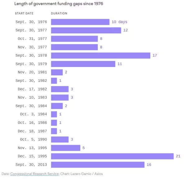 ▲1976年以來美國歷次政府關(guān)門時(shí)長
