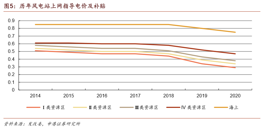 根據(jù)2019年5月發(fā)布的《關(guān)于完善風(fēng)電上網(wǎng)電價(jià)政策的通知》規(guī)定,國內(nèi)2018年底前已核準(zhǔn)的海上風(fēng)電項(xiàng)目,2021年底前并網(wǎng)執(zhí)行核準(zhǔn)時(shí)的上網(wǎng)電價(jià),2022年及以后并網(wǎng)執(zhí)行并網(wǎng)年份的指導(dǎo)價(jià)。