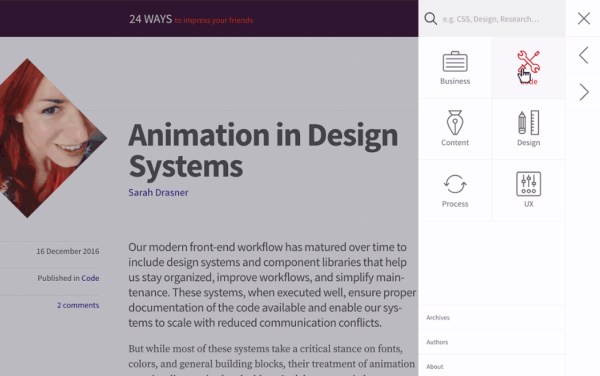 這種導航往往用的是 JS 語言排列布局,加上很多動效。這種方式往往會在一定程度上破壞可用性,但不得不說這會給人非常新穎的感覺。